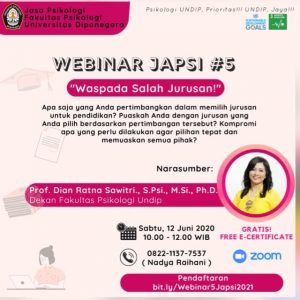 Fakultas Psikologi Universitas Diponegoro menyelenggarakan webinar dalam rangka World Class Professor (WCP) Program pada Sabtu,