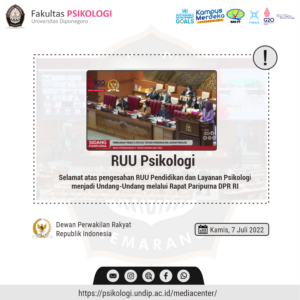 Fakultas Psikologi Universitas Diponegoro mengucapkan selamat atas telah disahkannya RUU Pendidikan dan Layanan Psikologi menjadi