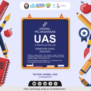 Selamat menjalankan Ujian Akhir Semester Gasal Tahun 2022/2023 bagi seluruh mahasiswa Fakultas Psikologi Universitas Diponegoro.