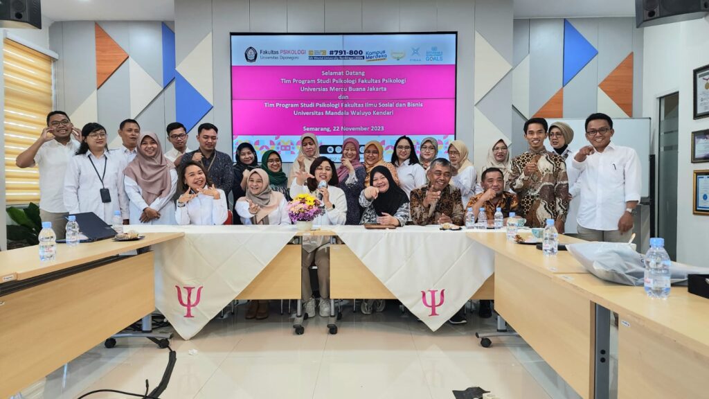 Fakultas Psikologi Universitas Diponegoro menerima kunjungan tamu dari Program Studi Psikologi, Fakultas Psikologi, Universitas Mercu Buana Jakarta dan Program Studi Psikologi, Fakultas Ilmu Sosial dan Bisnis, Unversitas Mandala Wahyu Kendari pada 22 November 2023.