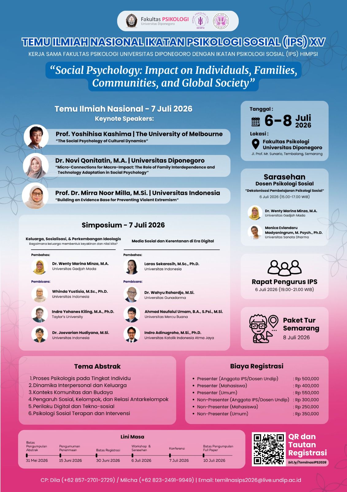 Temu Ilmiah Nasional Ikatan Psikologi Sosial (IPS) XV – “Social Psychology: Impact on Individuals, Families, Communities, and Global Society”