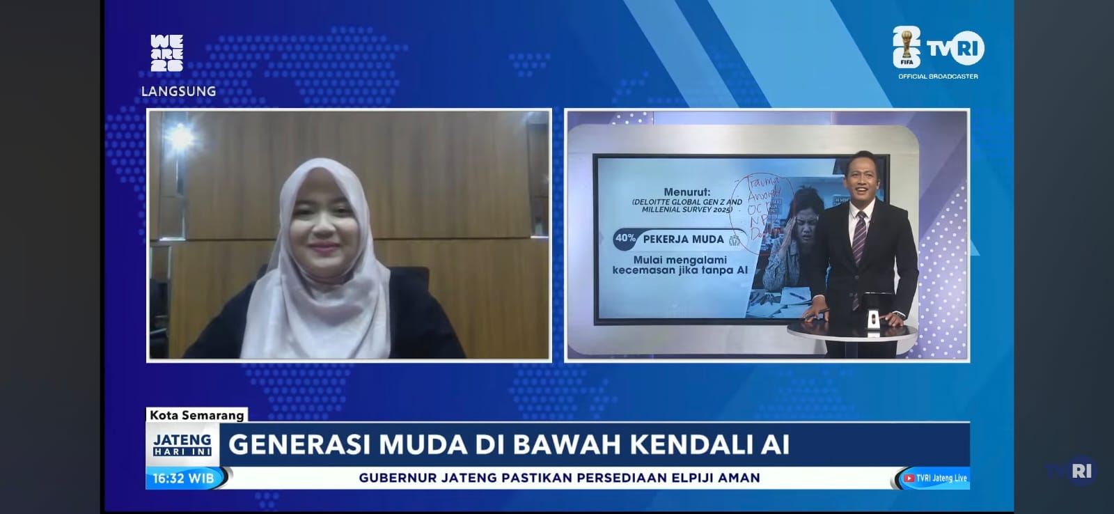 Dosen Fakultas Psikologi Universitas Diponegoro, Milcha Fakhria, S.Psi., M.Psi., Psikolog, menjadi narasumber dalam program Kring Daring Berita Jawa Tengah Hari Ini yang disiarkan oleh TVRI