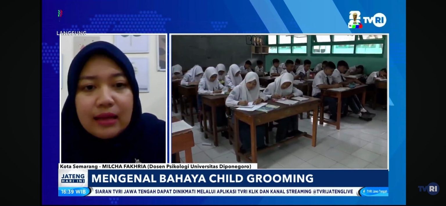 Semarang — Dosen Fakultas Psikologi Universitas Diponegoro, Milcha Fakhria, S.Psi., M.Psi., Psikolog, menjadi narasumber pada program Segmen Kring Daring TVRI Jawa Tengah yang disiarkan pada 29 Januari 2026 pukul 16.00 WIB. Pada kesempatan tersebut, Milcha mengangkat topik penting mengenai bahaya child grooming, sebuah bentuk kejahatan tersembunyi yang perlu diwaspadai oleh orang tua, pendidik, dan masyarakat luas.