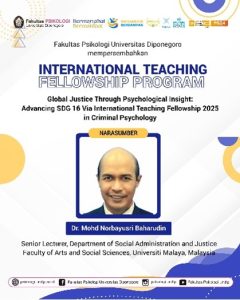 The Faculty of Psychology at Universitas Diponegoro (UNDIP) held a Visiting Professor Program by inviting