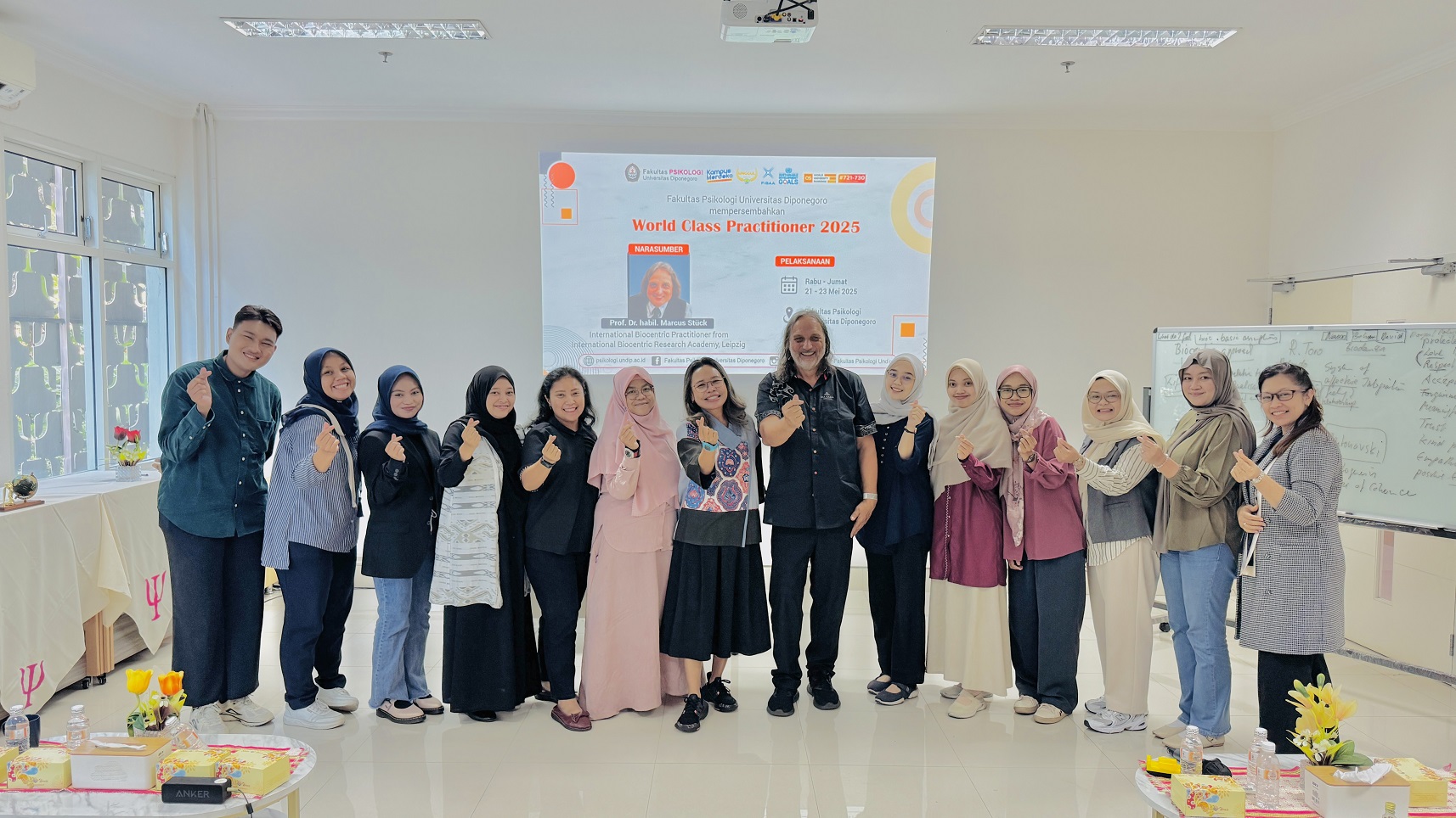 Melalui program World Class Practitioner di bawah World Class University Program 2025, Fakultas Psikologi Universitas Diponegoro menyambut Prof. Dr. habil. Marcus Stück, praktisi Biocentric Internasional dari International Biocentric Research Academy, Leipzig, Jerman. Kegiatan pertama Prof. Marcus adalah Kuliah Dosen Tamu untuk Mata Kuliah Resiliensi Keluarga Indonesia bertajuk “Resilient Families, Healthy Lives: A Practical Approach to Biocentric Health Theory” pada Rabu, 21 Mei 2025.