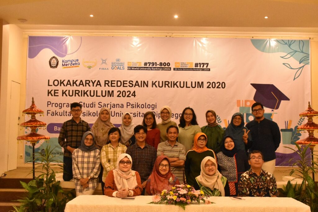 Program Studi S-1 Psikologi Fakultas Psikologi Universitas Diponegoro menyelenggarakan kegiatan Lokakarya Redesign Kurikulum 2020 ke Kurikulum 2024 di Susan Spa Hotel Bandungan pada 19-20 April 2024, dengan mengundang seluruh dosen. Agenda kegiatan lokakarya tersebut meliputi diskusi dan perumusan profil lulusan, capaian profil lulusan, bahan kajian, pembaruan mata kuliah, dan struktur kurikulum.