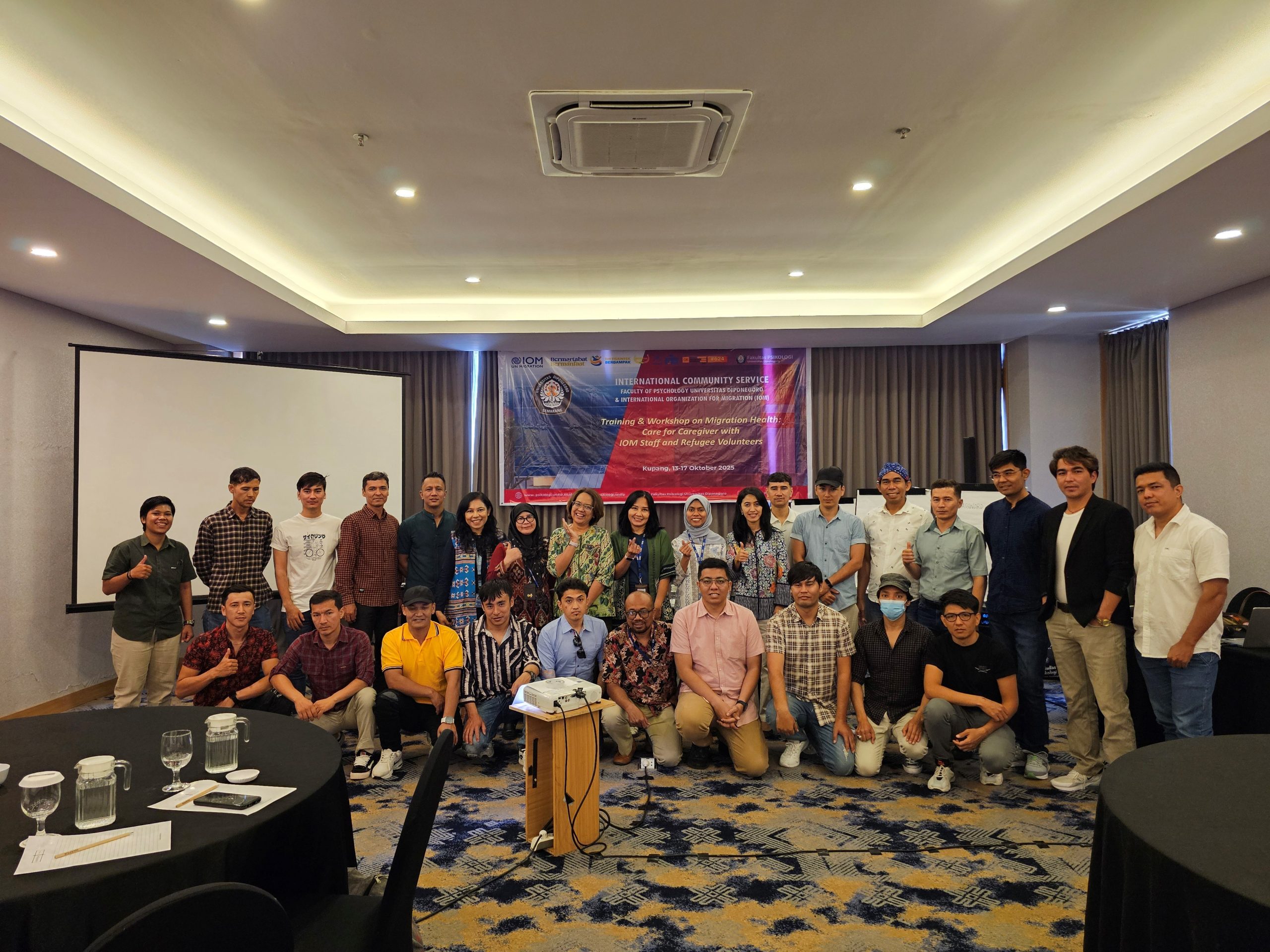 To strengthen global collaboration and support the achievement of Sustainable Development Goals (SDGs), Faculty of Psychology Universitas Diponegoro, in partnership with the International Organization for Migration (IOM), held a three-day training and workshop focusing on migration health and psychosocial care. This event brought together IOM staff, refugee volunteers, and academics to share knowledge and build capacity in addressing the mental and physical well-being of migrants and their caregivers. The program commenced with remarks from Mr. Jeffrey Labovitz, Chief of Mission of the International Organization for Migration (IOM), and Prof. Dian Ratna Sawitri, S.Psi., M.Si., Ph.D., Dean of the Faculty of Psychology at Diponegoro University.