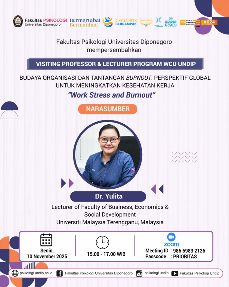 #VisitingProfessor #WCUProgram #HubunganIndustrial #WorkStress #Burnout #PsikologiKerja #PsikologiUNDIP #UNDIP